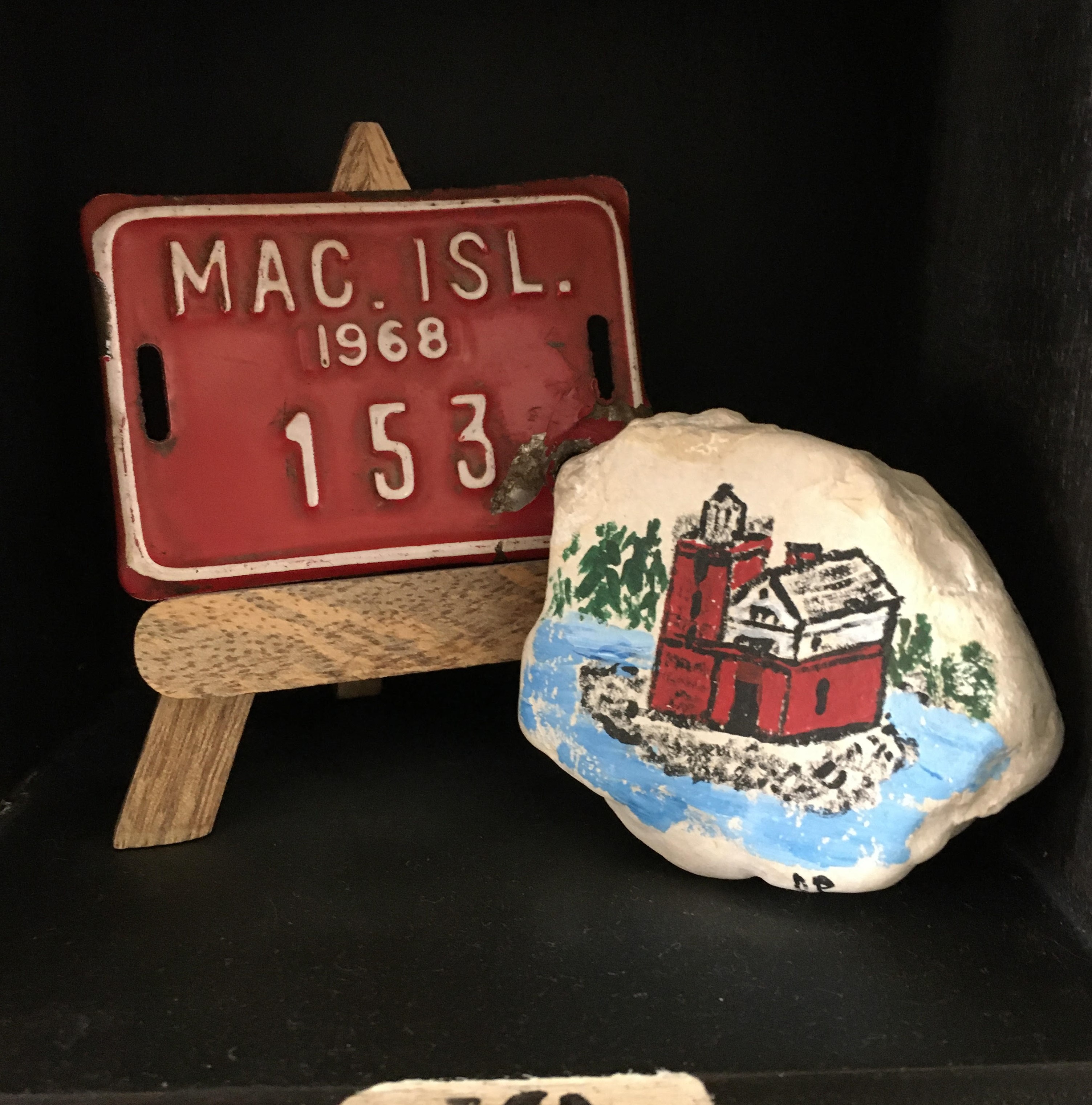 We found this 1968 Mackinac Island bicycle license in an antique store and had to have it. I painted the Round Island Lighthouse on a rock from the shore. These bring back memories of Mackinac Island.
