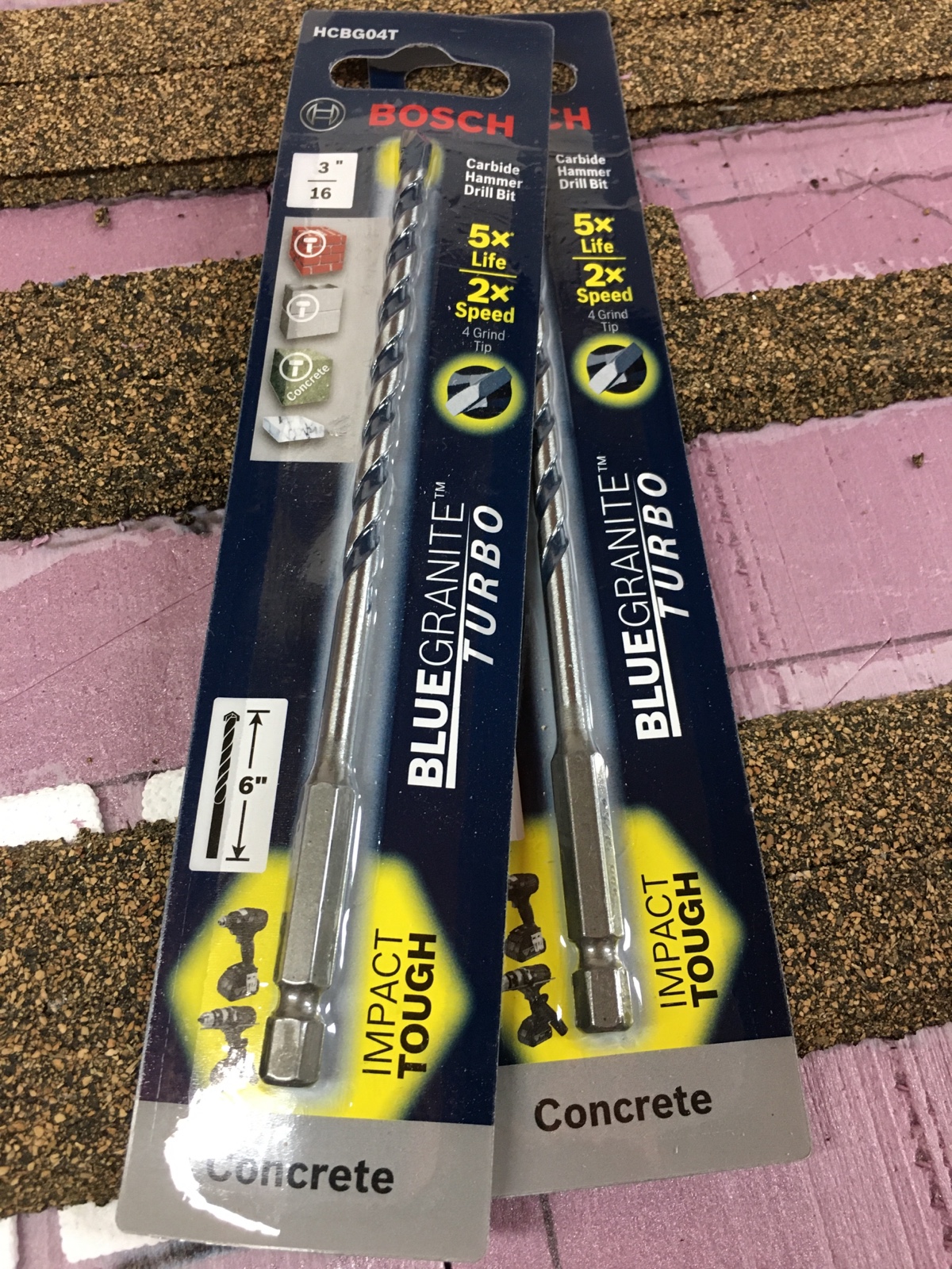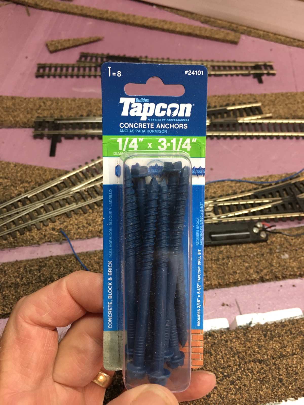 Bosch 3/16 inch concrete impact drill bits are necessary for making screw holes in the wall. I used 1/4 x 3-1/4 inch concrete anchor screws. With these screws it is NOT necessary to put anchors in the wall before placing the screws. These are fantastic for a quick, rock-solid hold on the brace leg.