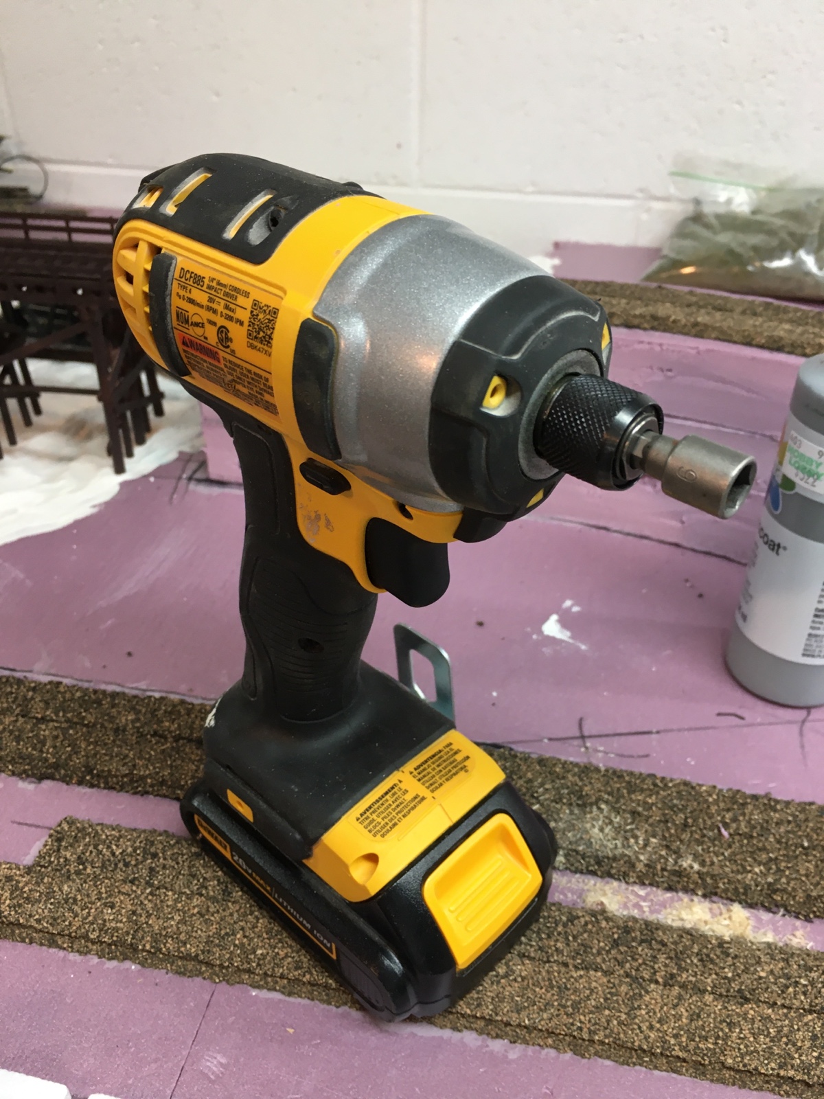 This is a close-up of the braces I made for my first shelf-style layout. These are the same braces but I had to adapt them a little bit for my current layout which is quite a bit larger than my first shelf.