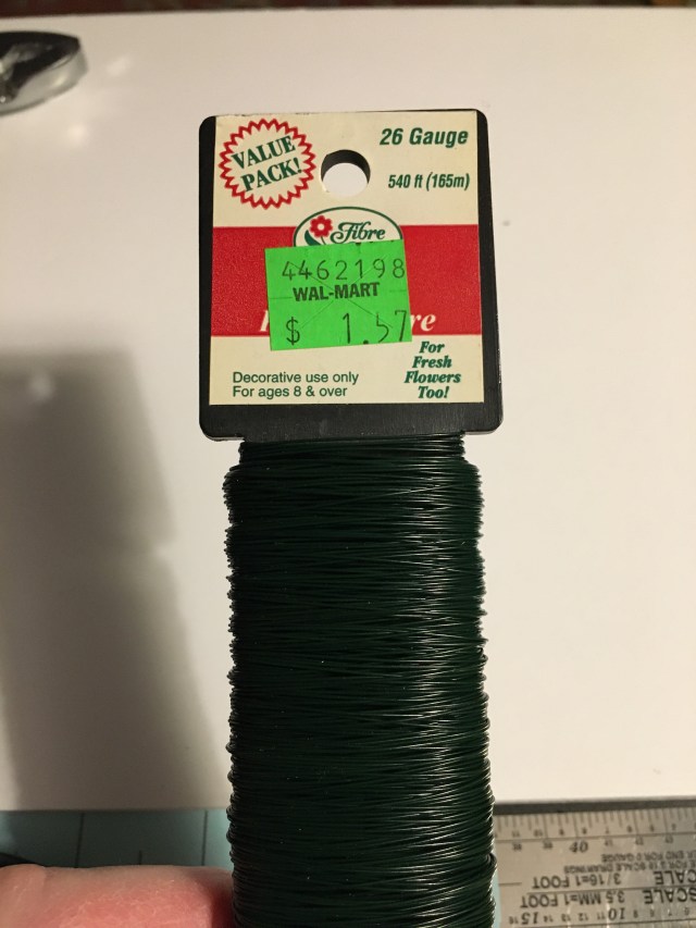 You can tell this floral wire is quite old – $1.57 at Walmart. I recently paid about $2.50 for a two-hundred fifty foot roll.