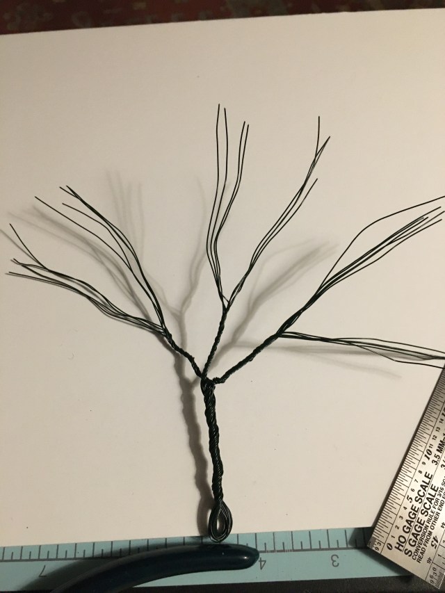 11. Using a pair of pliers, grip the wire ends and twist into small branches. (Some of the wire pieces may come off, but that’s okay.