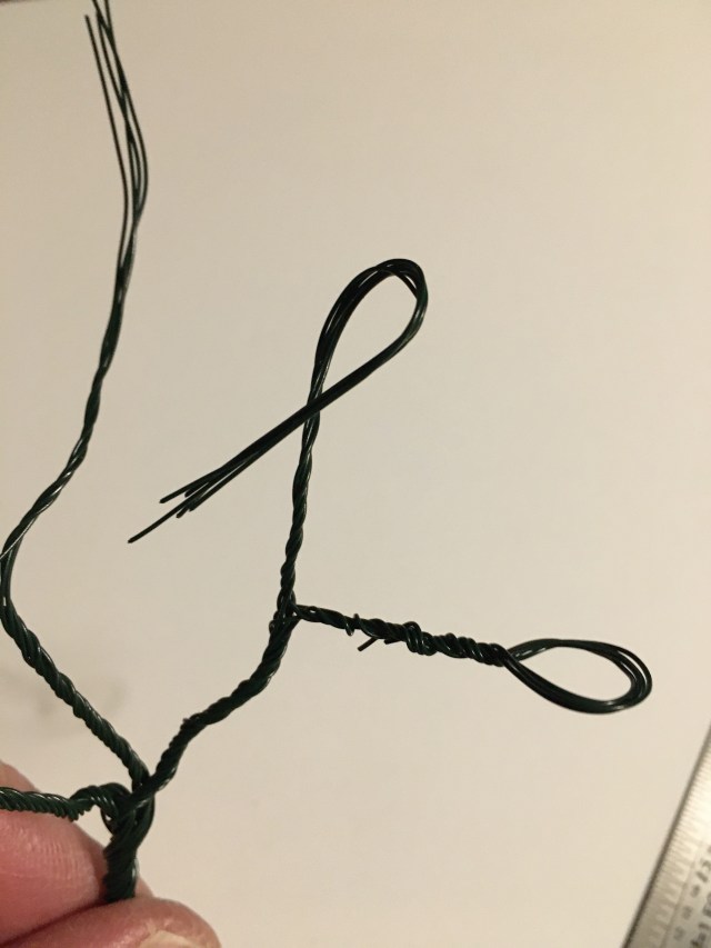 I use 26 gauge, green floral wire. A word of caution, even though 26 gauge is not stiff, the ends are still sharp and will easily poke into your skin if you’re not careful!